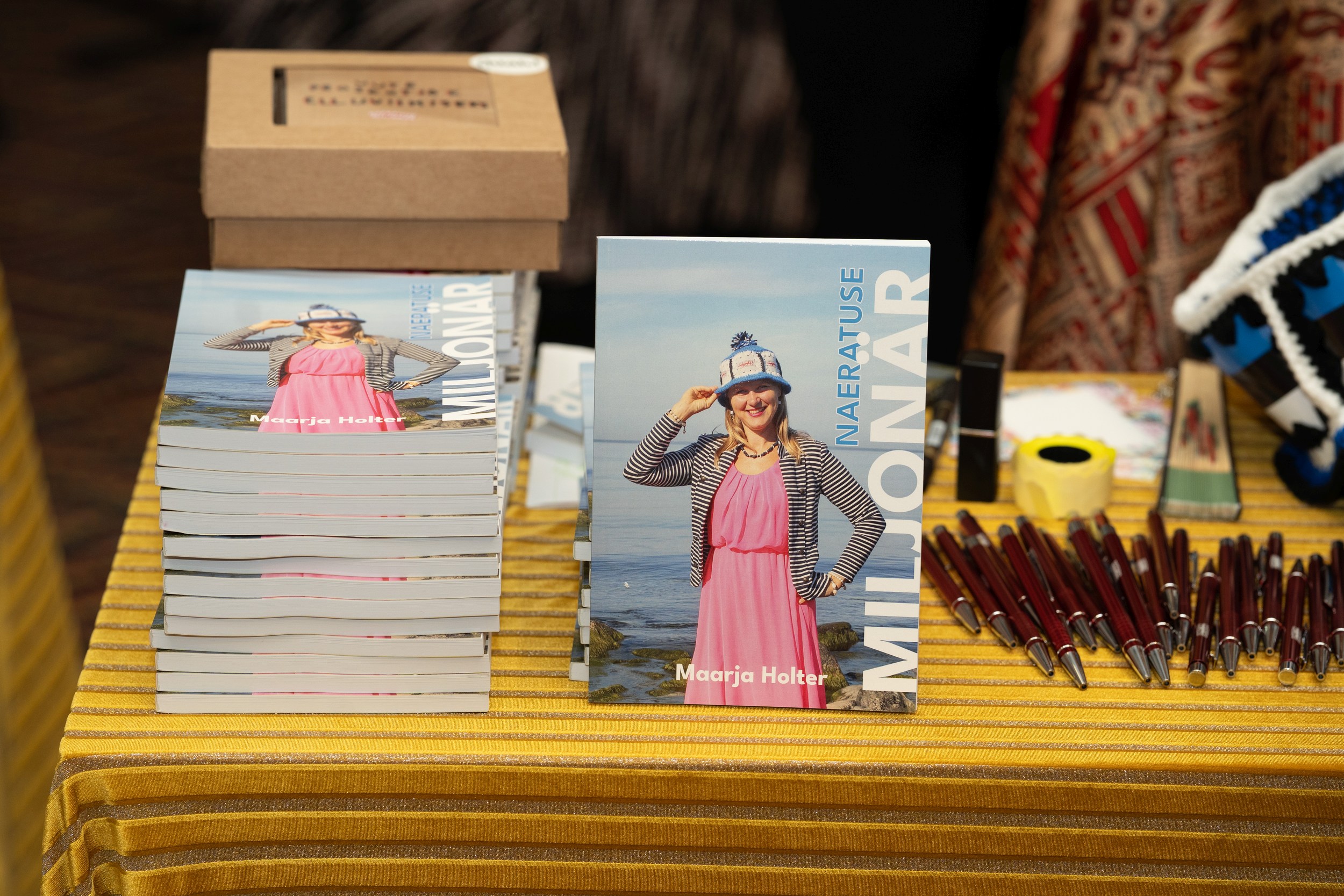 Raamat "Naeratuse Miljonär", purgimütsid, külmkapi magnetid, poekotid (uus toode) , pastakad